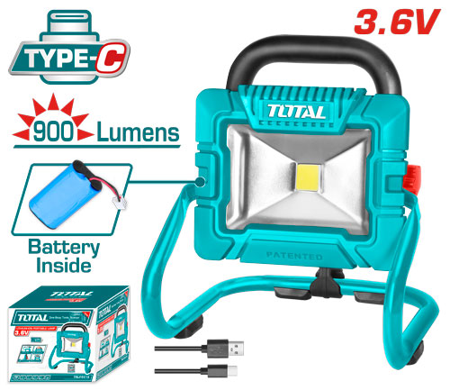PROYECTOR LED PORTÁTIL A BATERÍA INTEGRADA 3.6V 900LM - TOTAL