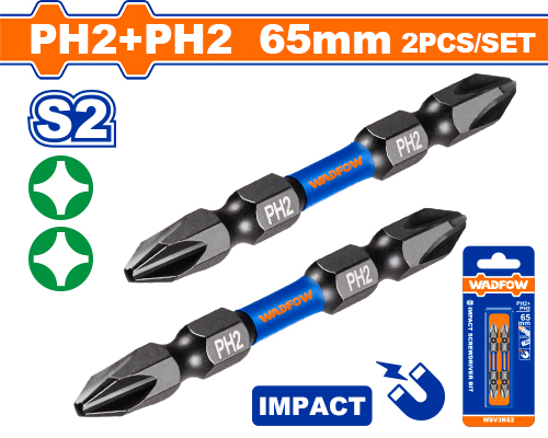 PUNTAS BIT DE ATORNILLADOR DE IMPACTO PH2+PH2 65MM (2 PZS) - WADFOW