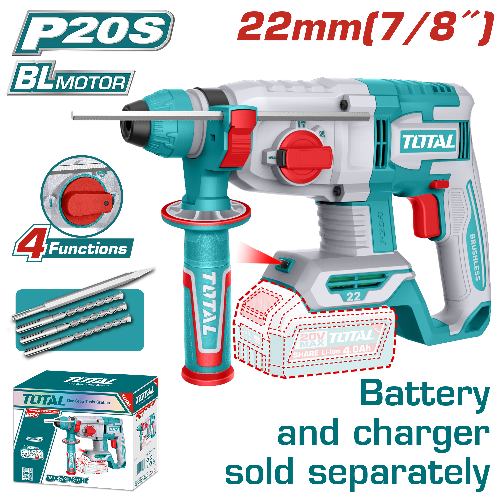 ROTOMARTILLO A BATERÍA 20V 22MM – SIN BAT – TRHLI21228 – TOTAL