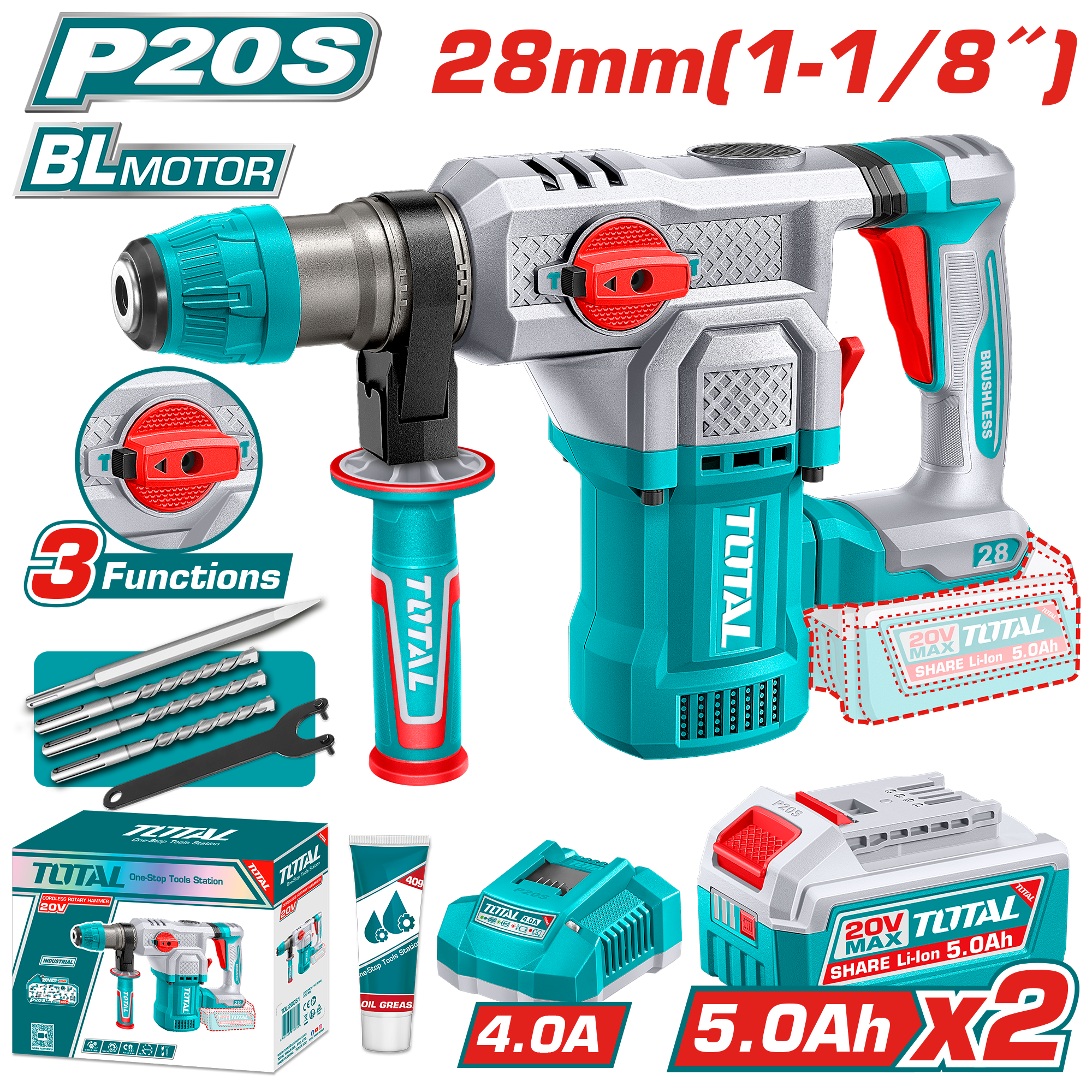 ROTOMARTILLO A BATERIAS 20V 28MM BL - 2BAT/CAR - TRHLI202862 - TOTAL