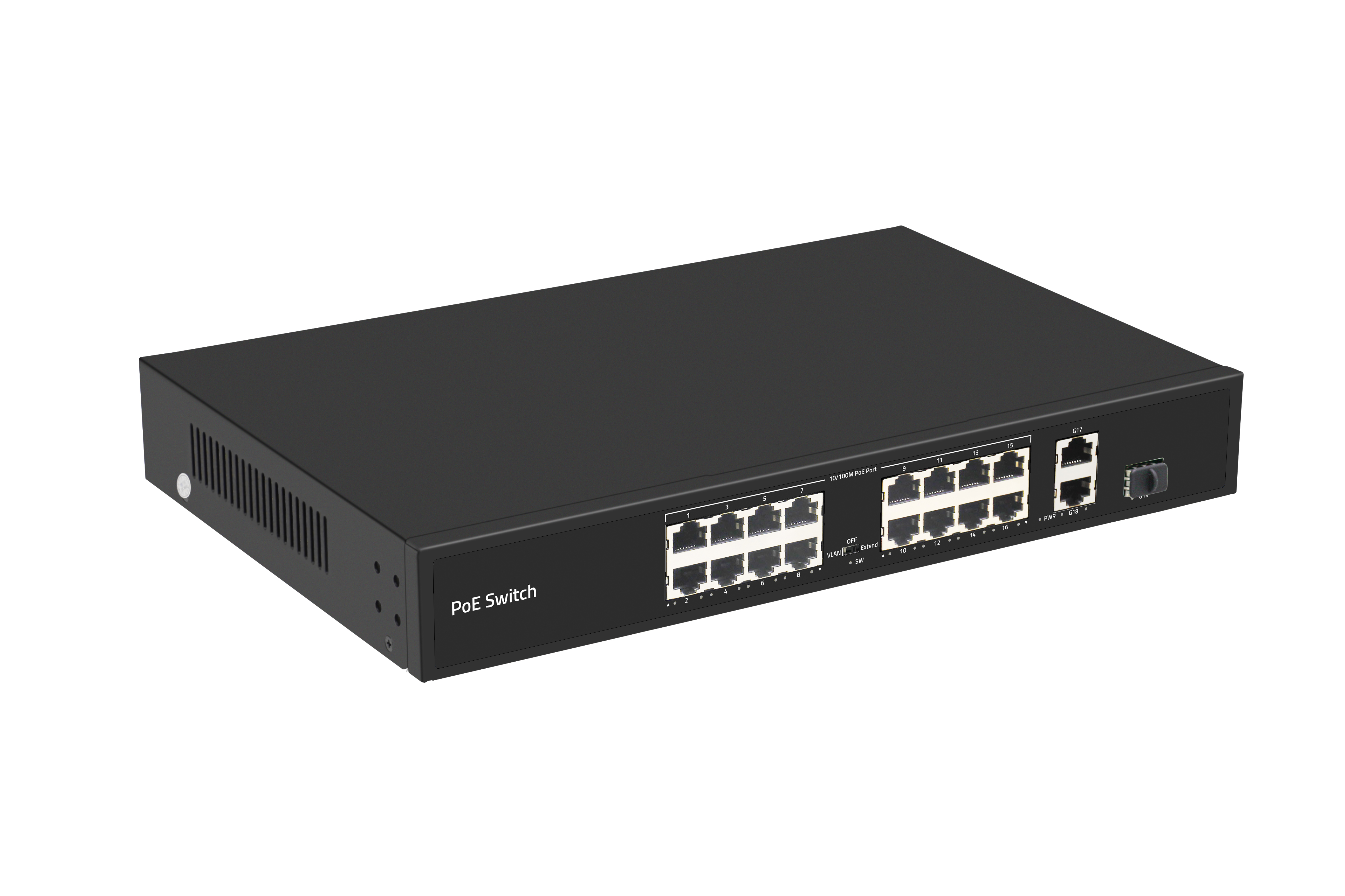 - 16*10/100M puertos POE + 2*10/100/1000M puertos unlink+1*10/100/1000M puerto SFP
