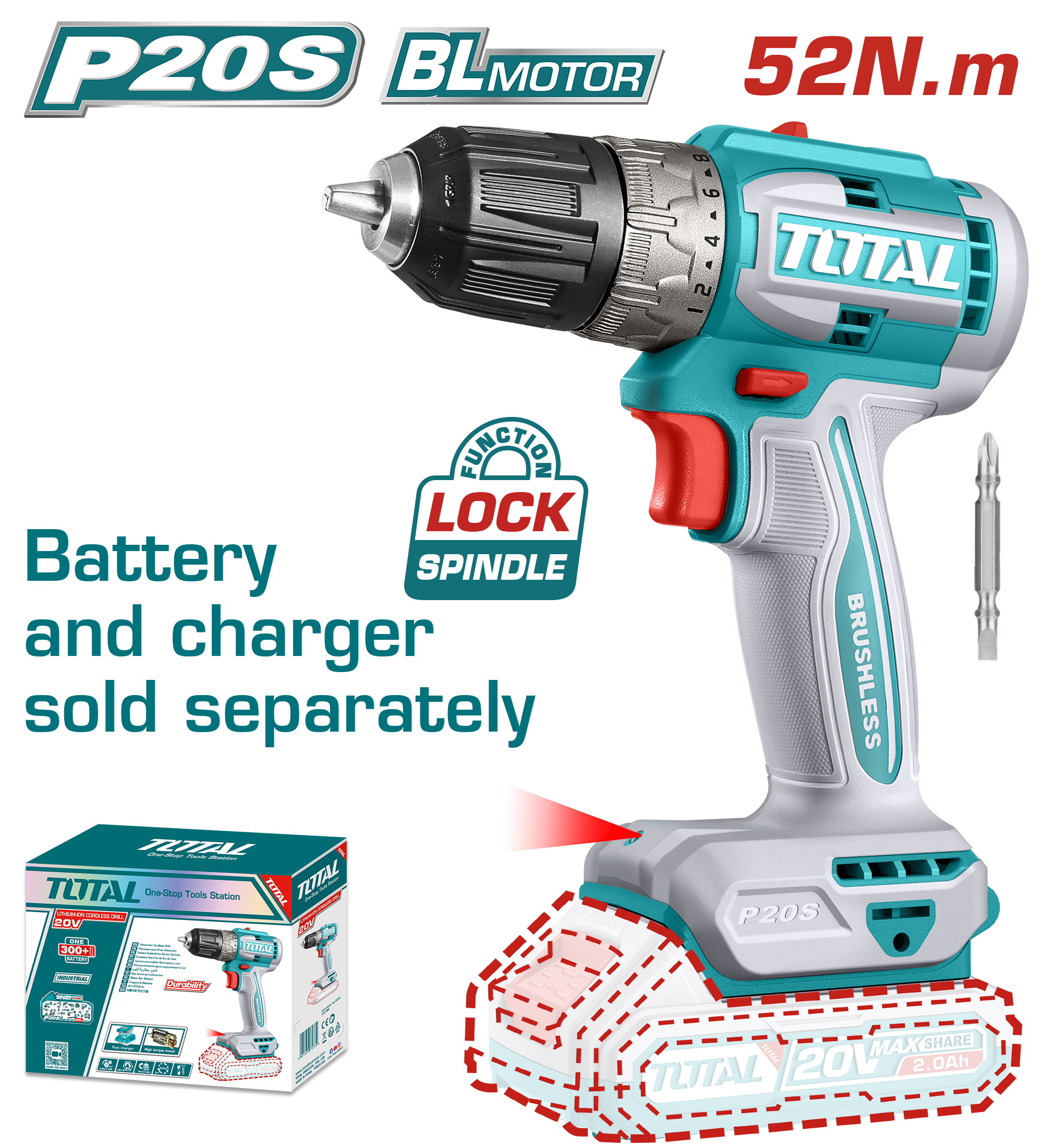 TALADRO ATORN A BATERIA 20V 52NM - SIN BAT - TDLI204531 - TOTAL