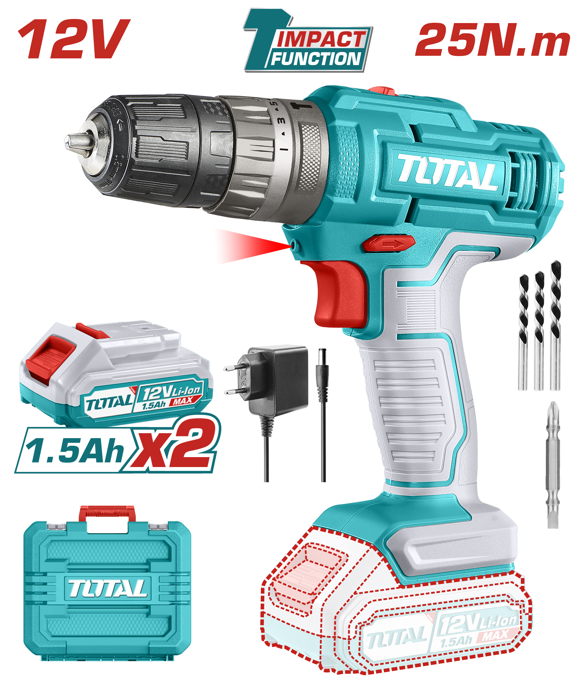 TALADRO DE IMPACTO (PERCUTOR) A BATERIA 12V 25NM - 2BAT/CAR - TIDLI1228 - TOTAL