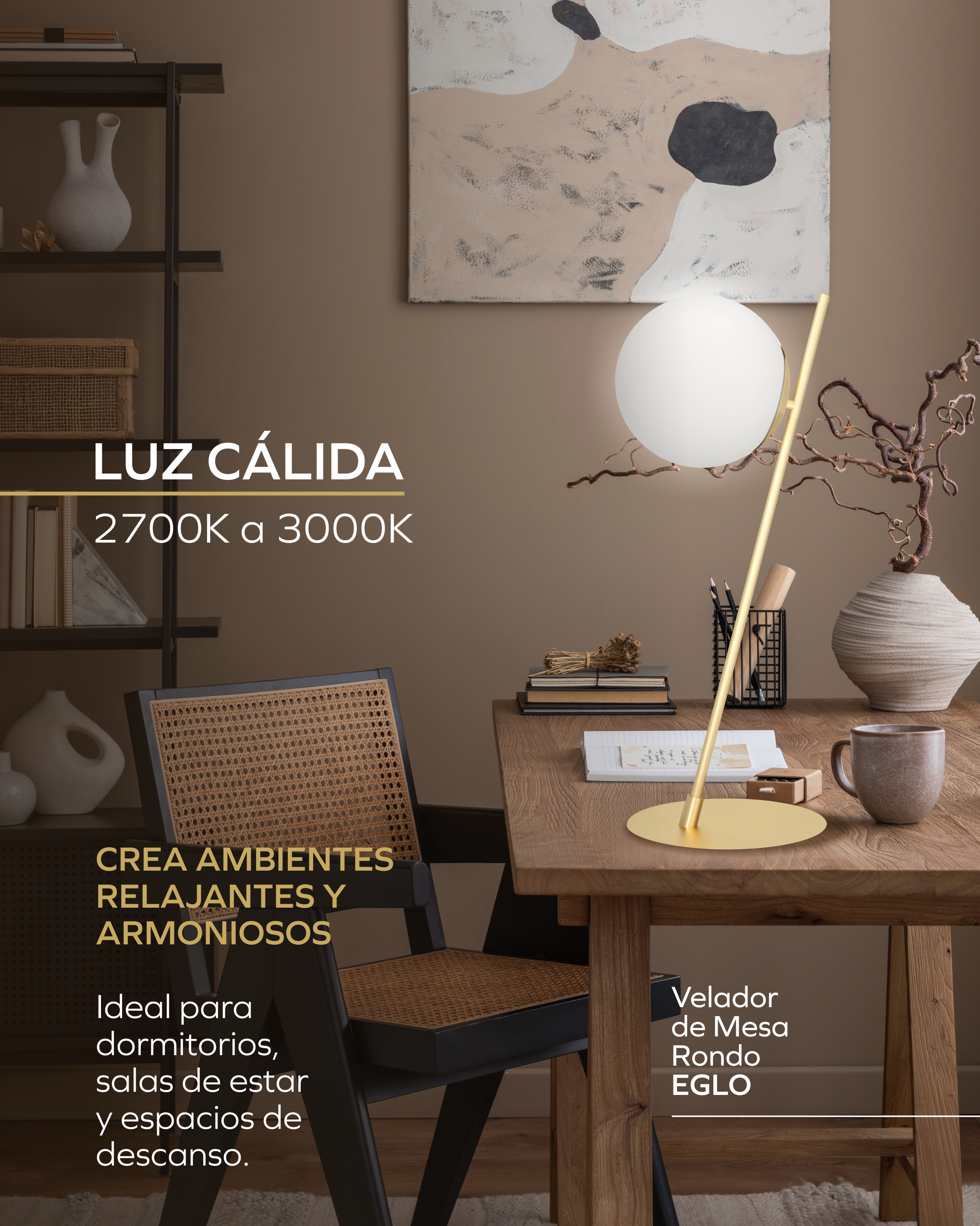 VELADOR MESA 1L E27 ACERO BLANCO/DORADO RONDO 4 - EGLO